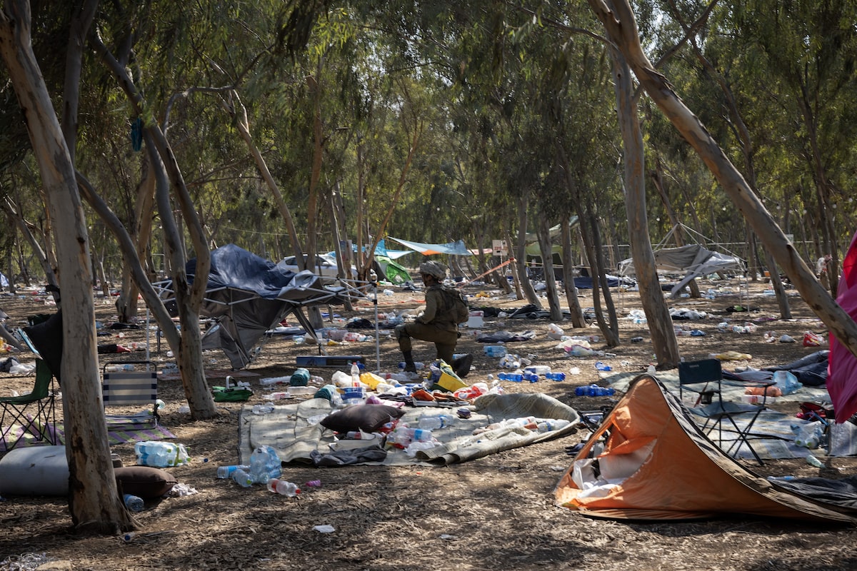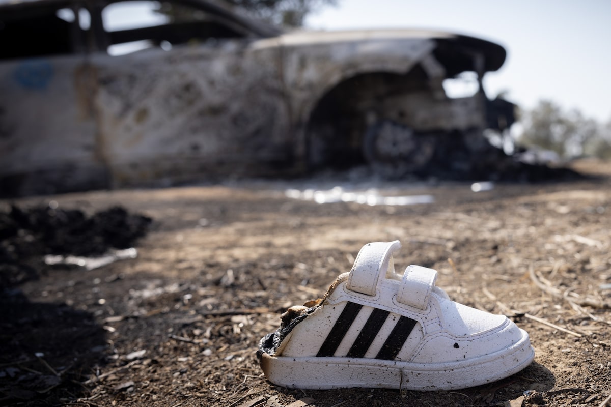 Hamas militants killed hundreds of Israeli civilians at the Supernova music festival on Oct. 7. Walking through the site four days later, Mr. Tomasevic was struck by the sight of the personal belongings – phone chargers, wallets, blankets, and so on – of the people who had been there at the time of the attack. Reflecting on the photo of a toddler’s shoe, Mr. Tomasevic said sometimes a picture can “show even more without showing the gruesome picture of dead bodies.”