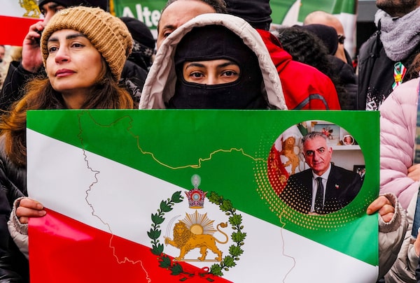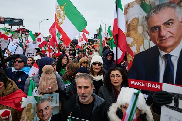 Protesters hold pictures of Iran’s exiled crown prince Reza Pahlavi, who said Toronto would be one of the main gathering points for Iranians living abroad to protest and call for regime change.Sammy Kogan/The Canadian Press