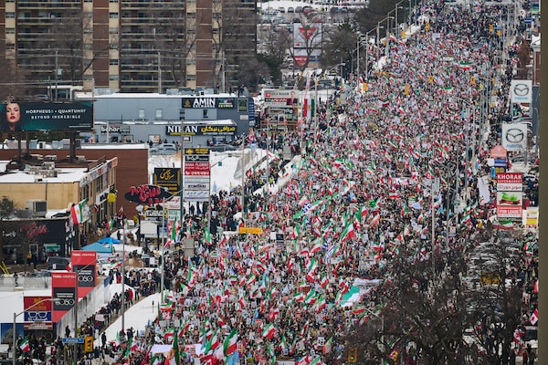 Hundreds of thousands of protesters marched in support of regime change in Iran during a demonstration in Toronto on Saturday.Sammy Kogan/The Canadian Press