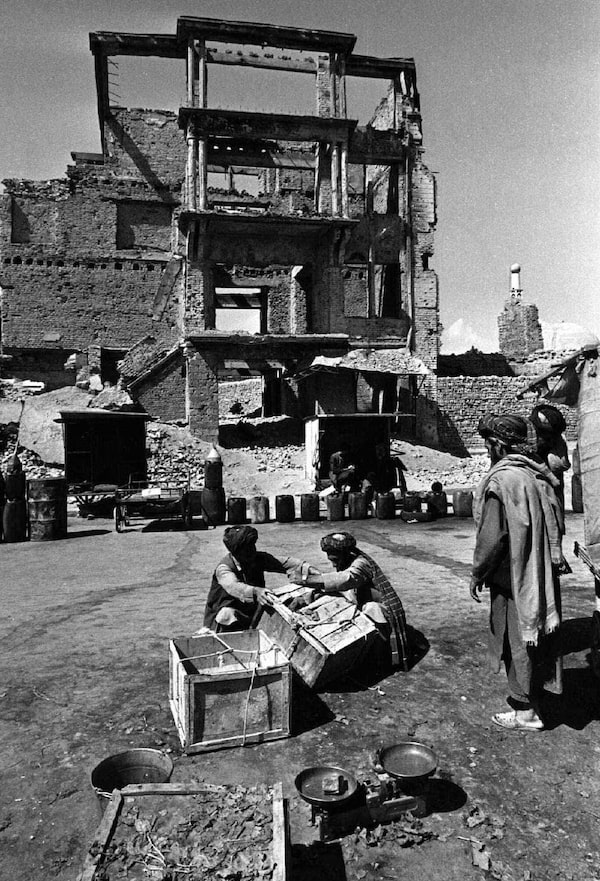 Vendors in war-ravaged Kabul set up their wares on Oct. 2, 1996, five days before Mr. Burns published a Pulitzer-winning report on the city's new Taliban rulers.George Fetting/Reuters
