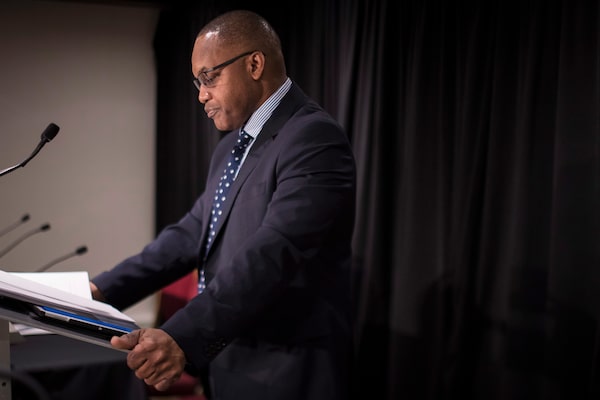 Justice Michael Tulloch discuses the report from the Independent Street Checks Review looking at Ontario's regulation on police street cheeks during a press conference at the Chelsea Hotel in Toronto, Ont., on Friday, Jan. 4, 2019.Tijana Martin/The Canadian Press