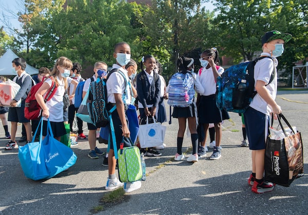 Students line up on the first day of school in Montreal on Aug. 31.Graham Hughes/The Canadian Press