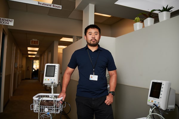 Nurse practitioner Edward Cho works in a team with Dr. Nicolle.