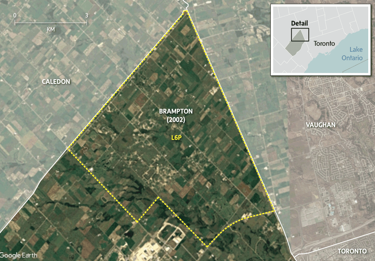 between Toronto and Brampton’s L6P area