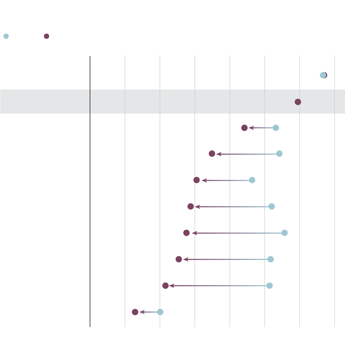 The decreases for all chronic conditions were highest in Ontario and New Brunswick. Alberta had the lowest decreases.