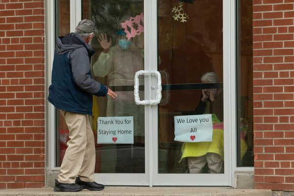 A man visits his mother-in-law on Mother's Day at the Altamont care home in Scarborough, Ont., on May 10, 2020. A new emergency order allows the Ontario government the control the management of long-term care homes hardest hit by COVID-19.Chris Young/The Canadian Press