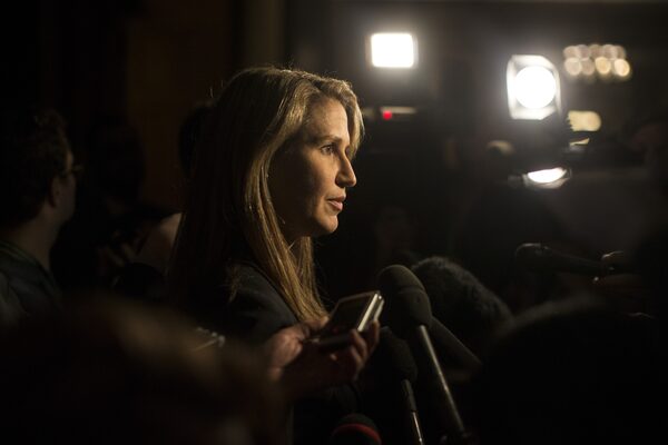 Attorney-General Caroline Mulroney, seen here scrumming with journalists in March, 2019, cited the statistic in an April 12 letter to Legal Aid’s chief executive about the cuts.Chris Young/The Canadian Press