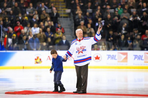 Mr. Faulkner with his grandson, George, at Mile One Centre in St. John's in 2011. Mr. Faulkner was inducted into the Hockey Newfoundland and Labrador Hall of Fame in 2014.Brian Tuck
