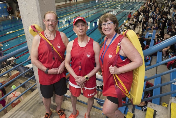 Lifeguards, from left, Brad Doley, Dave Smith and Sue Keeley, at the Canada Games Aquatic Centre in Saint John on April 21.Stephen MacGillivray/The Globe and Mail