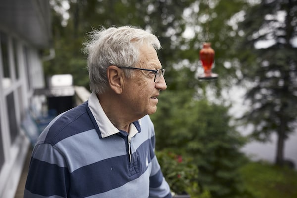 Daniel Tokateloff, the secretary for the Association for the Protection of Lake Taureau, on his balcony Saint-Michel-des-Saints, Que.