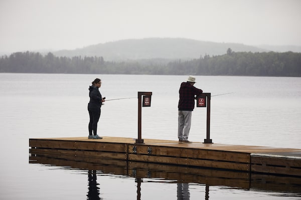 Above, Ali Baba's Cave. Below, people fish on a dock at Auberge du Lac Taureau resort, Saint-Michel-des-Saints, Que.