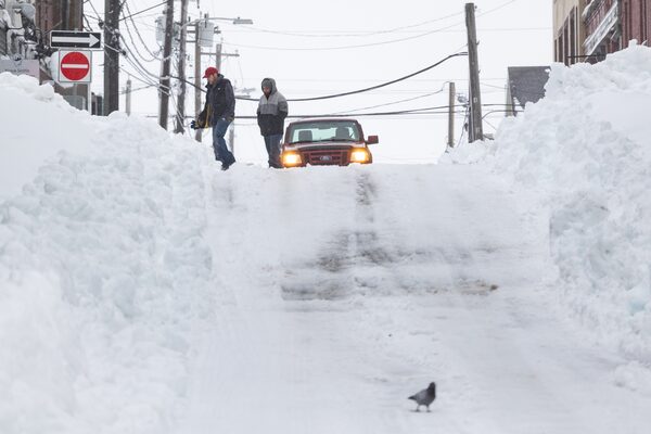 A truck is abandoned on a snow-covered street after a winter storm in Sydney, N.S. on Feb. 5.Shane Wilkie/The Canadian Press
