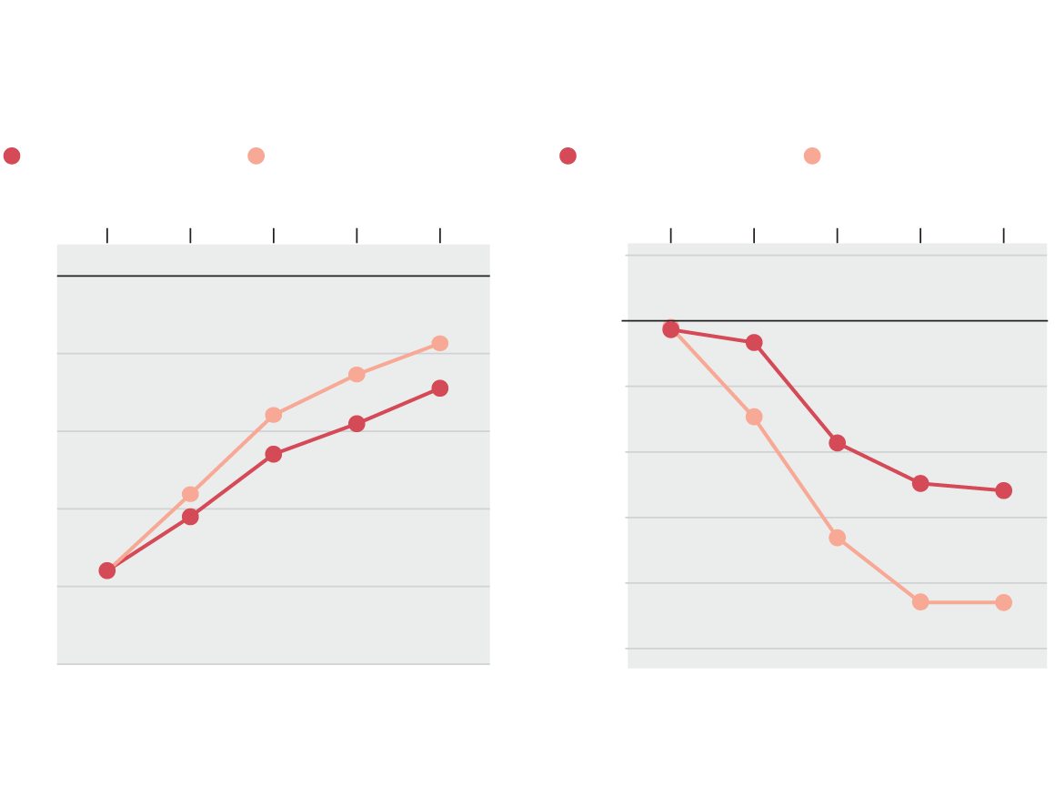 Universities have made progress adding women to their executive ranks – in 2019, 39 per cent of vice-presidents were women, up from 26 per cent in 1999 – but, on average, they still make less than male colleagues. Women VPs, for example, made 2 per cent less than male VPs in 2019, or $6,292 per year. There has also been dramatic improvement in representation for women in lower leadership roles, such as assistant VP – from 17 per cent in 1999 to 64 per cent in 2019. But at the very top, only 21 per cent of university presidents are women, which has actually fallen from a high of 24 per cent in 2009.