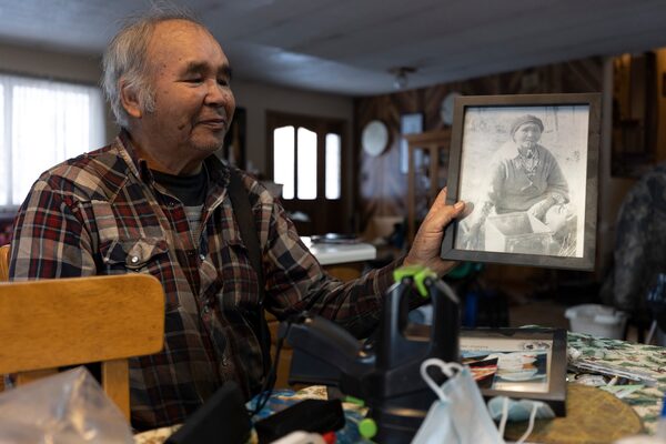Jack Chief smiles at an old photo of his grandmother, Jenny Bob.Crystal Schick/The Globe and Mail