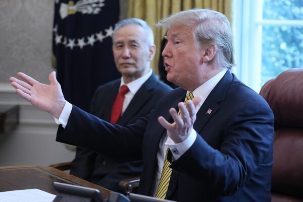 U.S. President Donald Trump speaks while meeting with China's Vice Premier Liu He in the Oval Office of the White House in Washington, on April 4, 2019.JONATHAN ERNST/Reuters