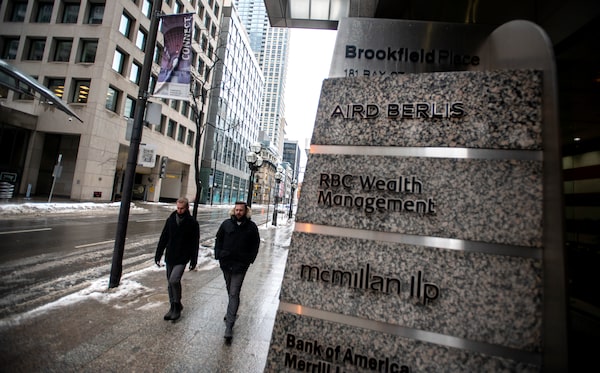 A sign for the law firm Aird Berlis outside Brookfield Place on Feb. 22, 2021.Fred Lum/The Globe and Mail