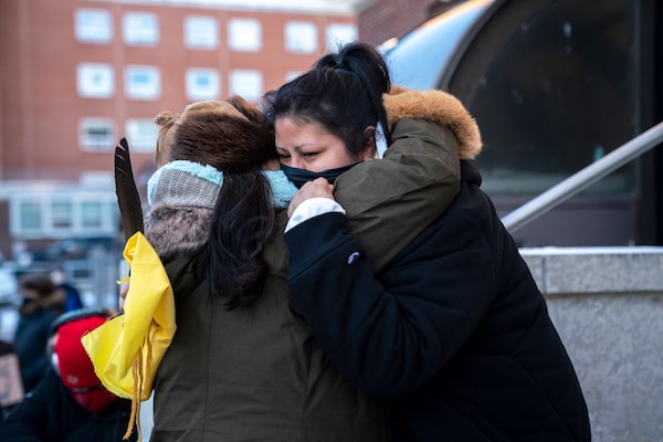 Melissa Kentner, sister of the late Barbara Kentner, embraces friends and family after exiting the courthouse where Brayden Bushby was found guilty of manslaughter in Kentners death.DAVID JACKSON/The Globe and Mail