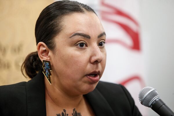 Grand Chief Kyra Wilson, Assembly of Manitoba Chiefs speaks to media at an Assembly of Manitoba Chiefs (AMC) news conference in Winnipeg on March 27.JOHN WOODS/The Canadian Press