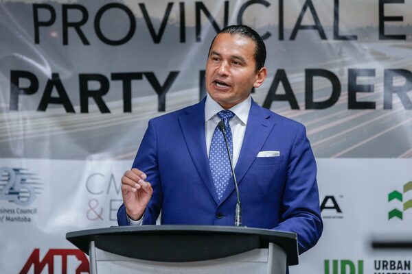 Manitoba NDP Leader Wab Kinew speaks at the Party Leaders Forum – Growing the Economy in Winnipeg on Sept. 12.JOHN WOODS/The Canadian Press
