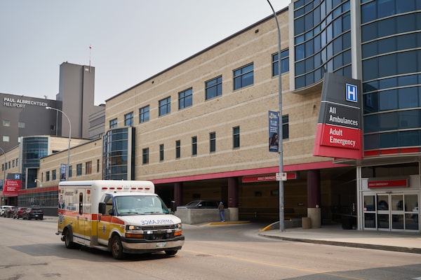 An ambulance drives past Health Sciences Centre in Winnipeg on June 15, 2023.david lipnowski/The Canadian Press