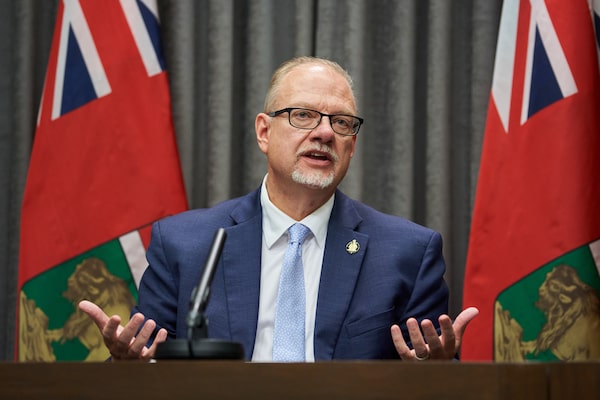 Then-Premier Kelvin Goertzen speaks to the media at the Legislative Building in Winnipeg on Sept. 1, 2021.David Lipnowski/The Canadian Press