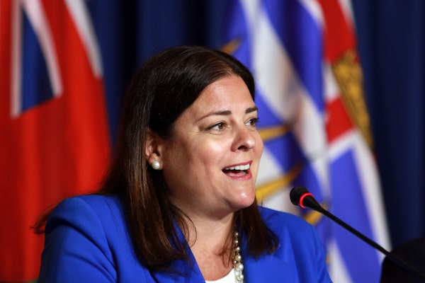 Manitoba Premier Heather Stefanson responds to a question from the media on the final day of the summer meeting of Canada's Premiers at the Fairmont Empress in Victoria, B.C., on July 12, 2022. Stefanson is expected to call an election Tuesday in a bid for a third consecutive Progressive Conservative majority.CHAD HIPOLITO/The Canadian Press