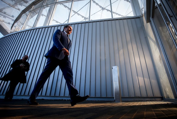 Manitoba Premier Wab Kinew enters a Premier and cabinet swearing-in ceremony in Winnipeg on Oct. 18.JOHN WOODS/The Canadian Press