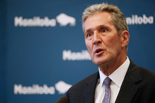 Manitoba premier Brian Pallister speaks to media after the tabling of his party's provincial budget was filibustered by the opposition NDP at the Manitoba Legislature in Winnipeg, Wednesday, March 11, 2020. THE CANADIAN PRESS/John WoodsJOHN WOODS/The Canadian Press