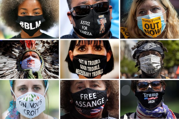 In London, protesters have been spotted wearing masks emblazoned with “Free Assange,” while in Toronto, Raptors head coach Nick Nurse and guard Fred VanVleet wore “Black Lives Matter” masks to a press conference, after Nurse gave the masks, made by a Toronto artist, to the team. Staff at retailers like Whole Foods and Starbucks in the U.S. have complained that their employers won’t allow them to wear masks with political or social justice messages, and have launched legal cases against such restrictions.