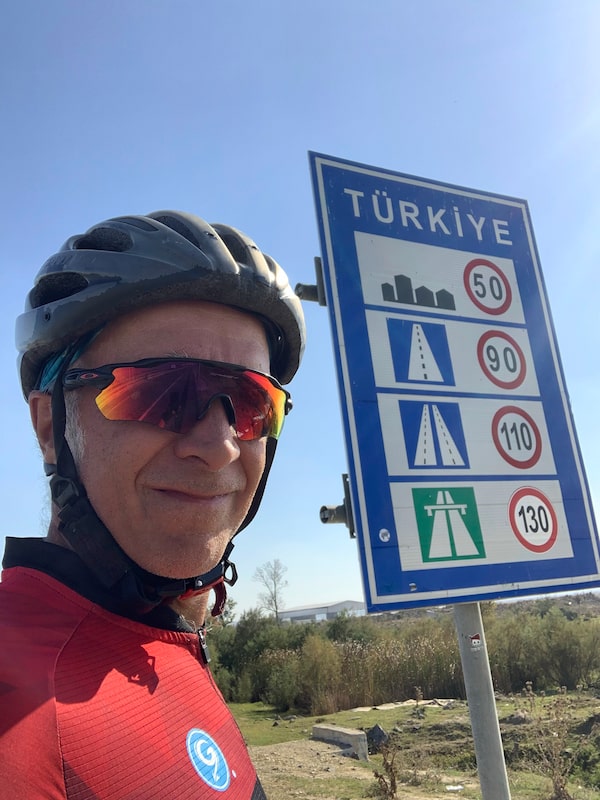 Mr. Lessard entering Turkey during his ride. He hoped to inspire the next generation of mechanical engineers through the talks he gave at universities during the trip.Supplied
