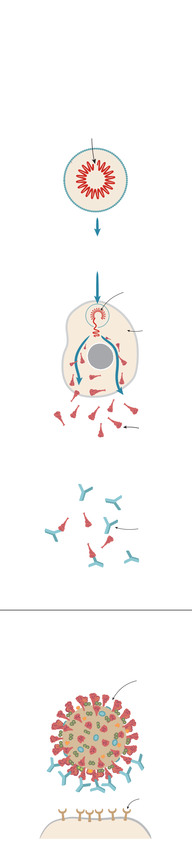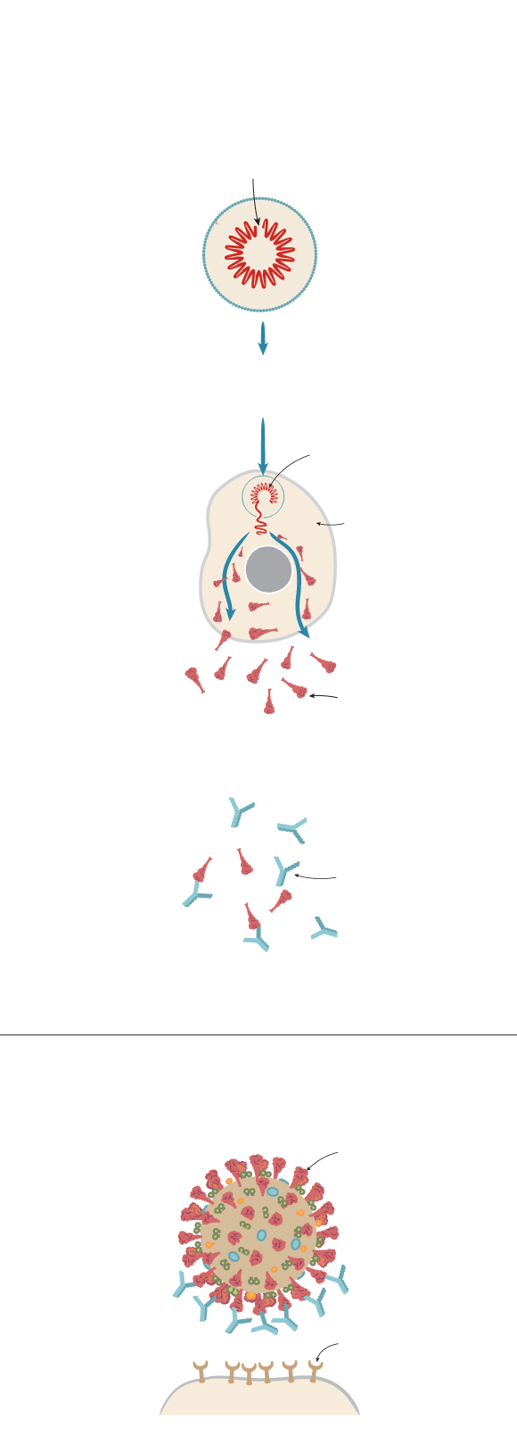 RNA enters host cell and provides instructions to make coronavirus spike protein