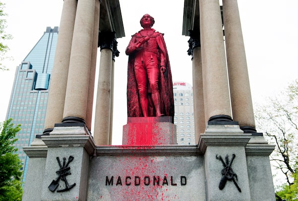 The statue of Sir John A. Macdonald is seen after being vandalized in Montreal, Friday, August 17, 2018.Graham Hughes/The Canadian Press