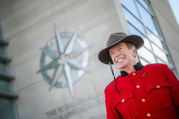 John Geiger, CEO of the Royal Canadian Geographical Society, stands outside the organization's Ottawa office on Wednesday wearing the newly purchased Monty Python Mountie costume.Ashley Fraser/The Globe and Mail