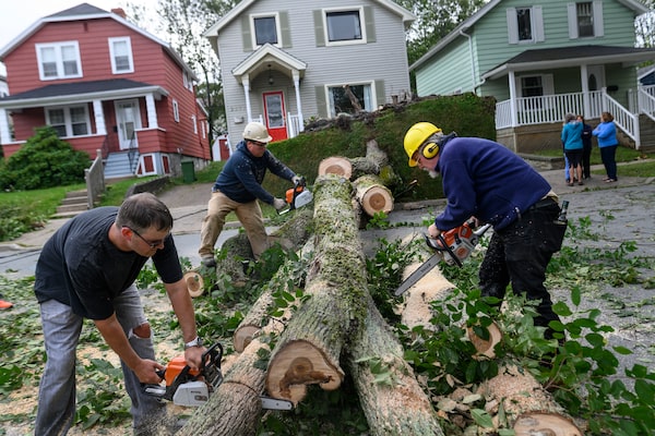 Halifax residents help clear a tree downed by Dorian on Sunday. (Darren Calabrese/The Globe and Mail)Darren Calabrese/The Globe and Mail