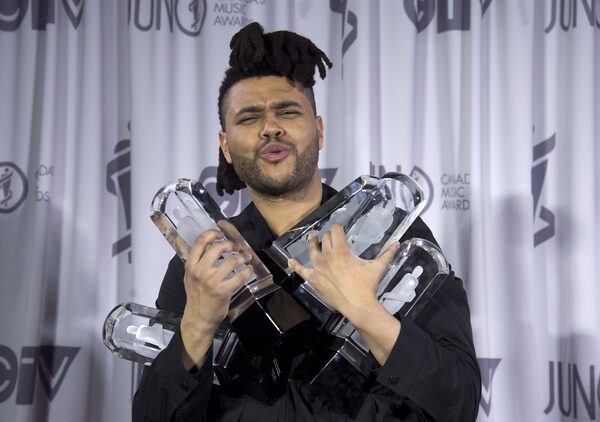 The Weeknd holds five Juno trophies at the awards ceremony in 2016.JONATHAN HAYWARD/The Canadian Press