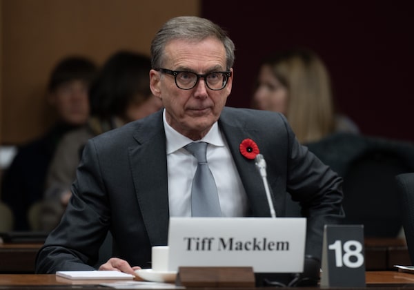 Bank of Canada governor Tiff Macklem waits to appear at the Senate Committee on Banking, Commerce and the Economy, in Ottawa, Wednesday, Nov. 1, 2023.Adrian Wyld/The Canadian Press