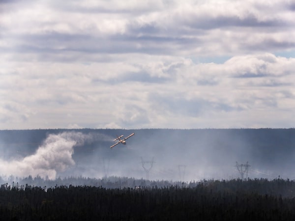 A water bomber flies over a wildfire just outside St. John's, N.L., yesterday.Elling Lien/The Canadian Press