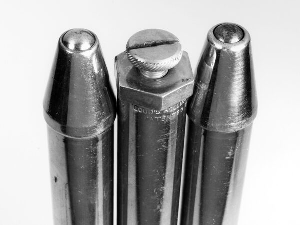 ONE-TIME USE ONLY WITH STORY SLUGGED NW-MIT-BALLPOINT-PEN-1029 -- 3396588 BALLPOINT PENS, 1888 Close-up view of samples of the rolling-pointed fountain marker, considered the first ballpoint pen, patented in 1888 by John J. Loud of Weymouth, Massachusetts. Credit: Granger / Bridgeman ImagesGranger / Bridgeman Images