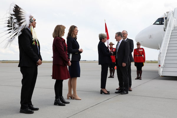British Prime Minister Keir Starmer is greeted at Calgary International Airport on Sunday as he arrives for the G7 Leaders' Summit.Amber Bracken/Reuters