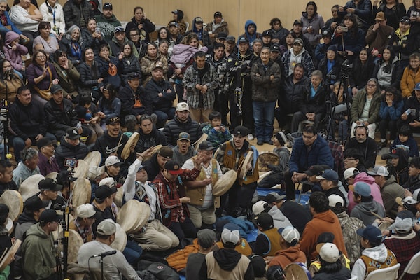 Players compete in traditional Dene handgames at the Sportsplex in Behchoko`, NWT.Pat Kane/The Globe and Mail