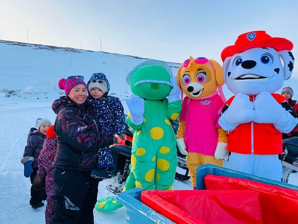The mayor of Hopedale sent this photo. It's of Tracy Dicker, the community's daycare operator, with her daughter, on a day when the 'Paw Patrol' animals were pulled through town on a snowmobile to entertain children stuck inside their homes.Supplied
