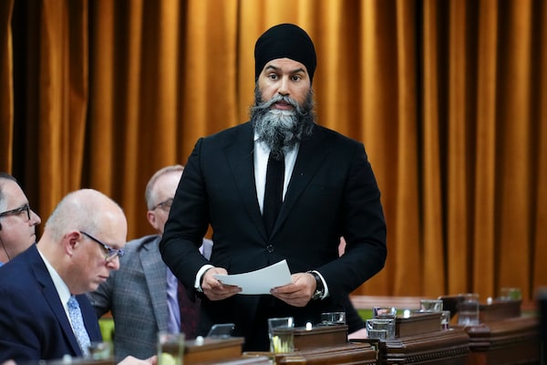 NDP leader Jagmeet Singh pays tribute to the late prime minister Brian Mulroney in the House of Commons on Parliament Hill in Ottawa on Monday, March 18, 2024.Sean Kilpatrick/The Canadian Press
