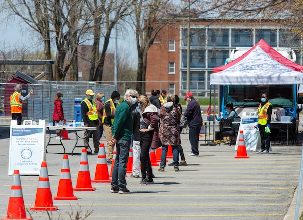 People line up at a mobile COVID-19 testing clinic, Thursday May 14, in Montreal North. Ryan Remiorz / The Canadian PressRyan Remiorz/The Canadian Press