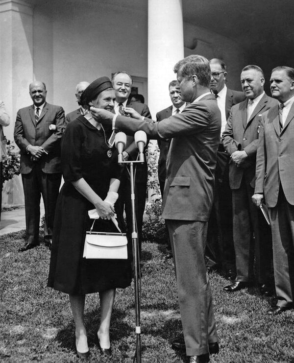 Frances Oldham Kelsey wins award for keeping thalidomide out of the U.S.