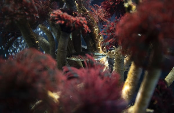 A three-spine stickleback is seen in its tank at the Discovery Passage Aquarium on opening day in Campbell River, B.C., on May 21, 2022.Marissa Tiel/The Globe and Mail