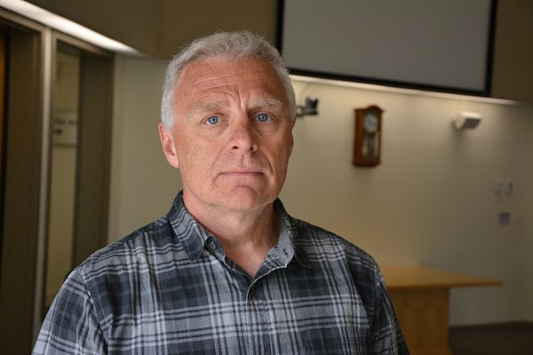 Dauphin Mayor David Bosiak stands inside the city council chamber on June 16, 2023.Jeremy Simes/The Canadian Press
