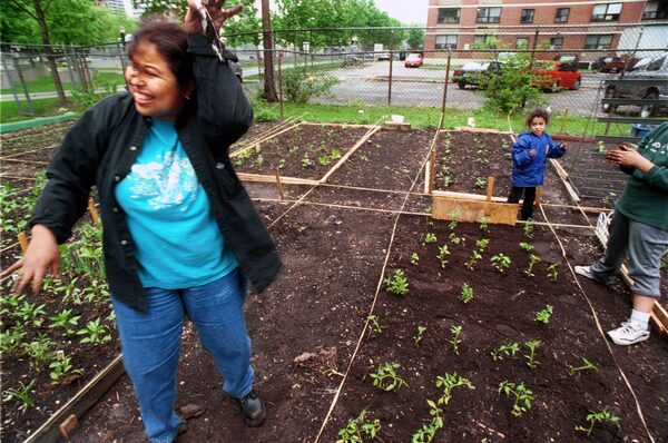 Sonia Guevara and her daughters plant their first garden in Toronto's east end in 2000.Patti Gower/The Globe and Mail