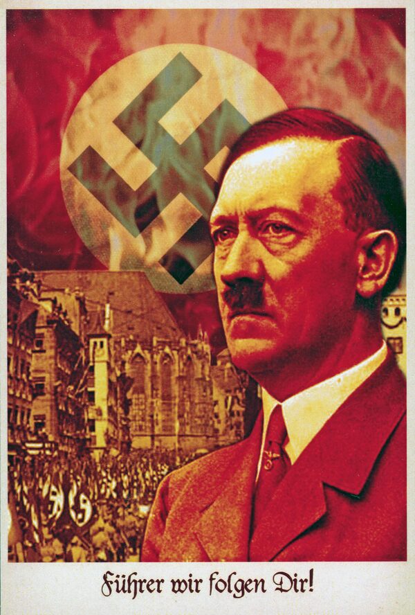 World War II Nazi propaganda postcard: "Fuhrer, we follow you!"Look and Learn / Elgar Collection / Bridgeman Images