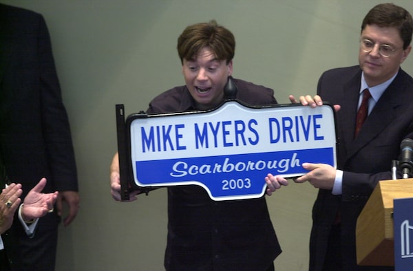 Toronto-born actor Mike Myers is presented with the key to the City of Toronto and a street named in his honour in Scarborough, Ont., on June 25, 2003.Louie Palu/The Globe and Mail