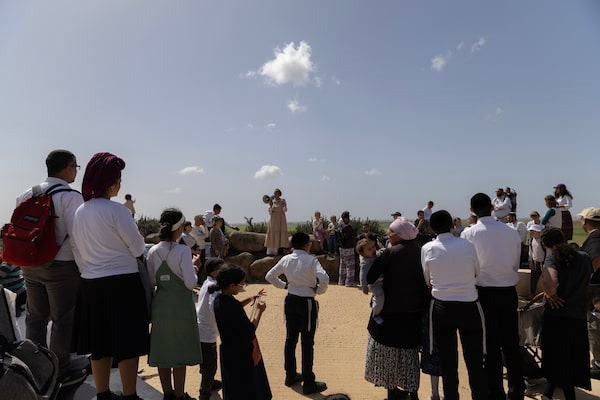 Hadar Bar-Chai, an activist in the settlement movement, speaks during a gathering of hundreds of Israelis at the “Black Arrow” site near the Gaza border in support of re-establishing Jewish settlements in the Gaza Strip, April 6, 2026.David Blumenfeld/The Globe and Mail